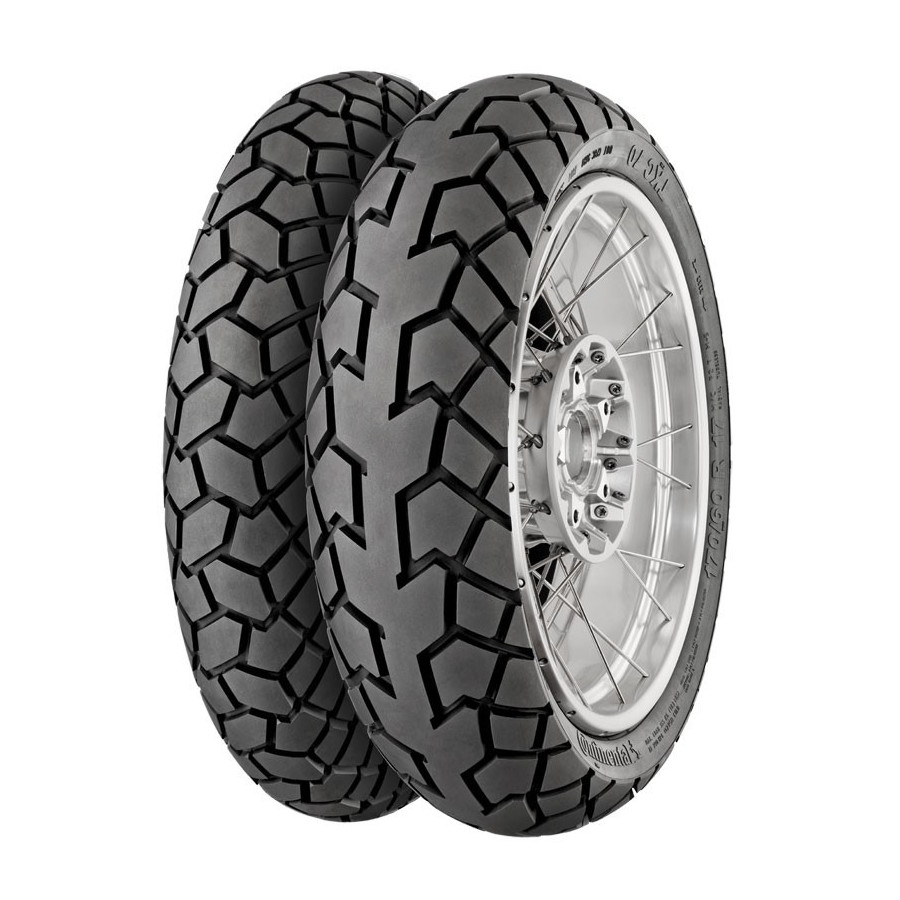 Pneumatika Continental TKC 70 určená pro enduro v sobě spojuje to nejlepší z off-roadové pneumatiky TKC 80 a on-road pneumatiky Conti Trail Attack 2. Můžete ji tedy bez obav použít jak na silnici, tak v terénu. Systém bloků běhounu TKC 70 je tichý a stabilní na silnici při zachování dobré schopnosti off-road funkce. Semi-Dual Compound technologie umožňuje různé úrovně tvrdosti na běhounu a kostře, což nám zajistí více najetých kilometrů a lepší přilnavost k povrchu vozovky. Nová směs má také pozitivní vliv na zahřívání, kterého je dosaženo ve skutečně krátké době. Ocelová konstrukce této pneumatiky zaručuje vysokou stabilitu a nízký zpětný ráz Continental TKC 70 je určená z 60 % na silnici a 40 % na použití v terénu.