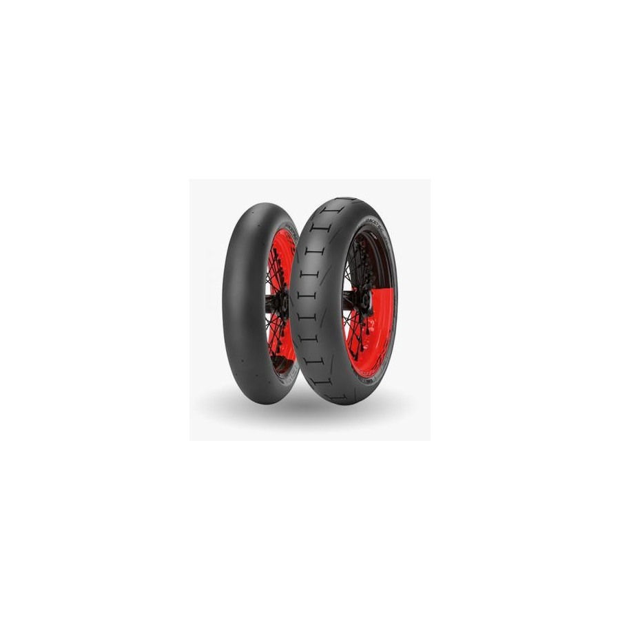 NHS závodní motopláště vyvinuté pro použití na závodním okruhu, není homologována pro použití na běžných komunikacích. Profil přední pneumatiky navržený pro rychlé řízení s maximální stabilitou. Specifický profil zadního pláště zkonstruovaný pro přenos vysokého výkonu moderních motocyklů kategorie superbike umožňuje rychlou změnu směru a dokonalou odezvu. Nejnovější moto pneu pro supermoto závody. Dvě rozdílné high tech směsi upraveny speciálně pro co nejlepší adaptabilitu v různých podmínkách zaručují dokonalou přilnavost a progresivní skluz s excelentní trakcí. Struktura kostry pláště byla speciálně upravená pro ještě lepší zpětnou vazbu na různých typech povrchu. Zároveň se postará o excelentní samotlumící schopnost pneu, a tím i komfortnější jízdu.