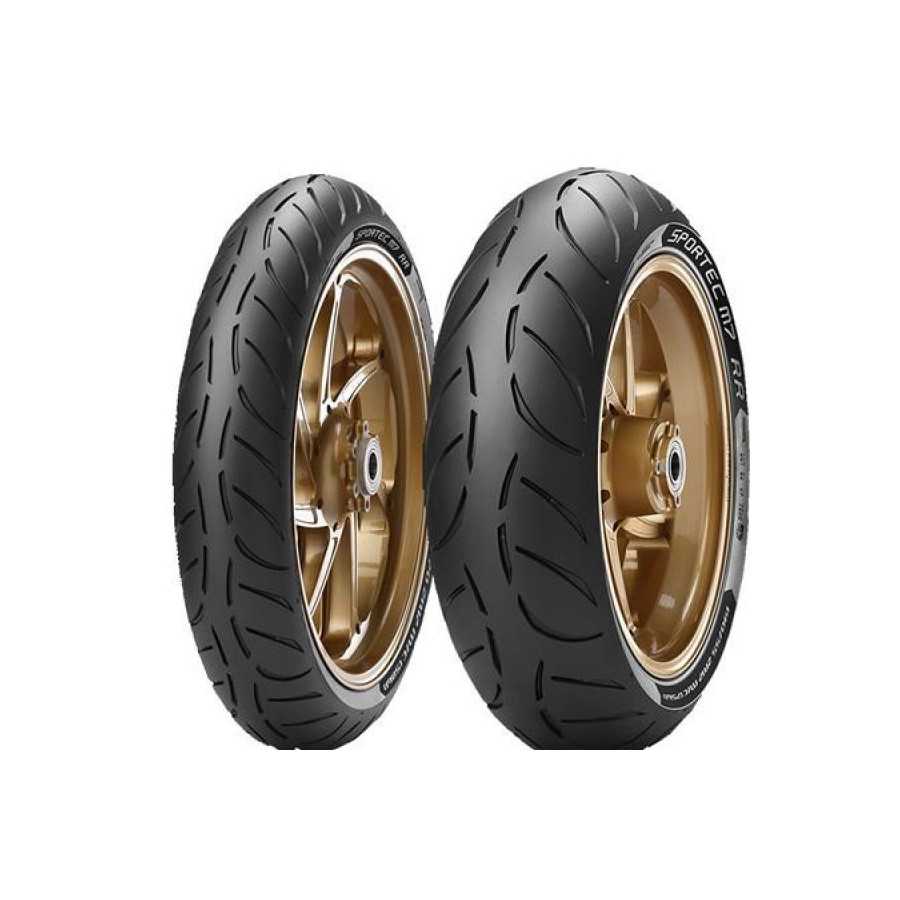 Metzeler Sportec M7 RR je nástupcem úspěšných Sporteců M5 INTERACT. Nový Sportec M7 RR je nejnovější produkt pro všechny motocykly kategorie Supersport a Naked. S úspěchem ho využijete na silnici při děšti i za jasného letního odpoledne. Tato moto pneu byla vyvinuta s odkazem na závodění na přírodních okruzích, kde není ideální povrch, místy mokré úseky, místy v zatáčkách štěrk a prach. Přední pneu je vyrobena ze stoprocentní siliky, která má pozitivní vliv na přilnavost, díky čemuž se budete i na mokrém povrchu cítit bezpečně. U zadní pneu byla využita dvousměsová revoluční technologie 5 zón poskytující svému uživateli maximální přilnavost, excelentní řízení a dostatečnou stabilitu v každém úhlu náklonu, ale také skvělé ovládání na mokrém, špinavém a zvlněném povrchu. Dobře snáší změny povrchu i teplot. Toto obutí je vhodné pro jezdce, kteří preferují sportovní jízdu a používají motocykl za různých podmínek a situací každý den.