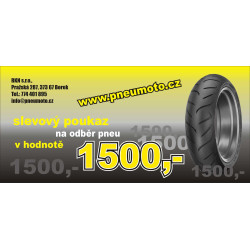 Motopneu Slevový poukaz 1500Kč spadá do cenové kategorie pneumatik do 2000Kč . Tato pneumatika je vyráběna společností RKN s.r.o.. Rozměry pneumatiky jsou
